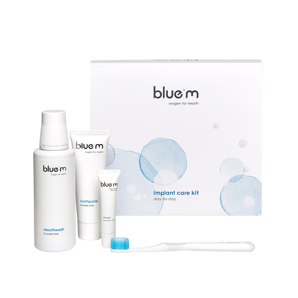 Šiame rinkinyje yra kruopščiai atrinktų „Blue®m“ produktų, skirtų palaikyti optimalią burnos sveikatą ir padėti išvengti problemų ateityje, todėl kasdien rūpintis implantais yra lengviau.